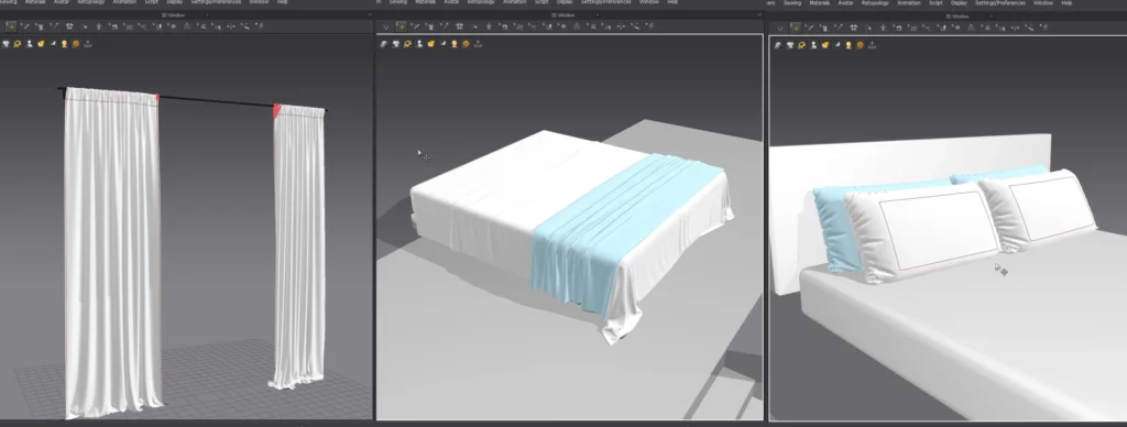 J’ai utilisé Marvelous Designer pour les drapés à partir de gabarits créés dans Blender.
