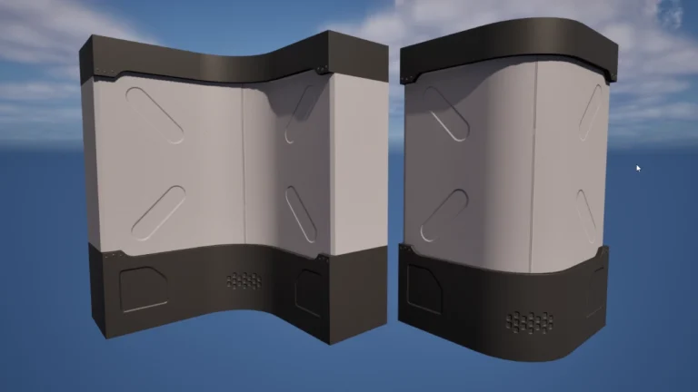 J’ai utilisé Unreal Engine pour tester mon environnement. Cela marche aussi bien que dans Blender, je n’ai pas eu de mauvaise surprise. Le fait de pouvoir créer des variations de shader augmente encore la possibilité de créer des nouvelles pièces pour la configuration modulaire.